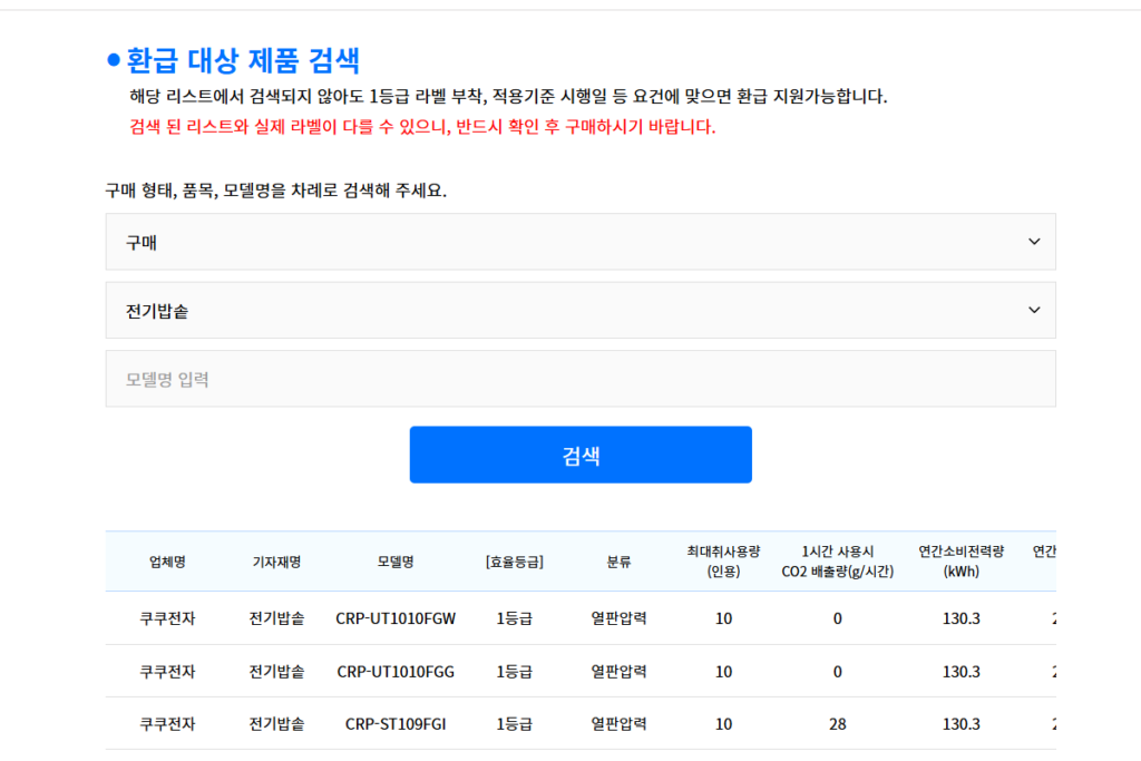 | 전기밥솥 | 에너지소비효율 1등급 제품 |